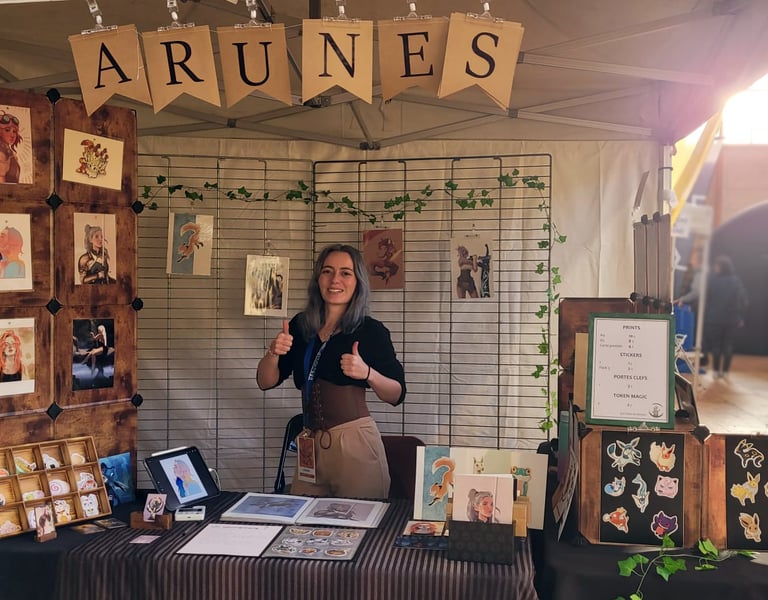 J'ai réalisé ce 22/23 Mars ma première convention à la Jap'Aisne de Soissons et cela a été une expérience incroyable. J’ai été ravie de voir que mes créations originales ont trouvé leur public ! Voir mes propres illustrations plaire et partir entre vos mains, c’est une sensation juste magique. Un énorme merci pour votre soutien et vos retours si encourageants !